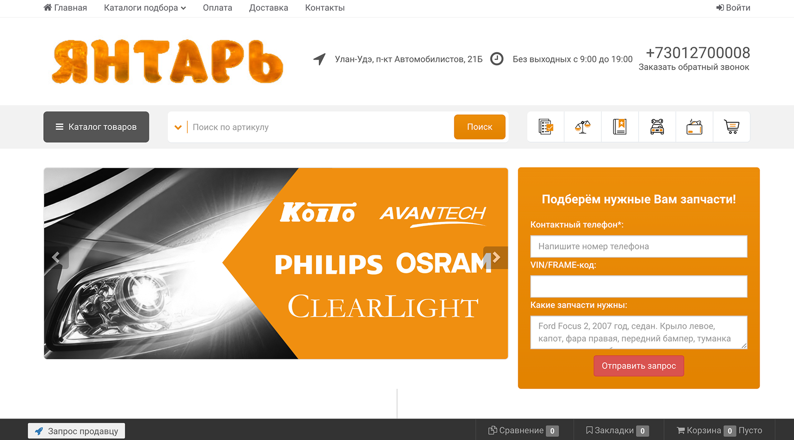 интеграцией виджета каталога подбора контрактных автозапчастей. Собрана